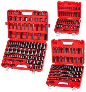 210 Piece Drive Impact Socket Set, 1/4, 3/8, 1/2 Inch, 6 Point Deep & Shallow Impact Sockets, SAE (3/16 to 1-1/4 in) and Metric (4 to 32 mm) Sizes with Extension Bars, Cr-V Steel, Carrying Case
