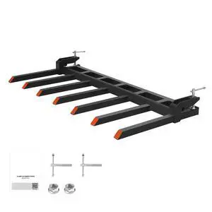 Clamp on Debris Forks to 48" Bucket, 2600 lbs Capacity Heavy Duty Clamp on Pallet Forks Bucket Attachments, Fit for Loader Bucket Skidsteer Tractor to Clean up Fallen Limbs Debris or Yard Wwaste