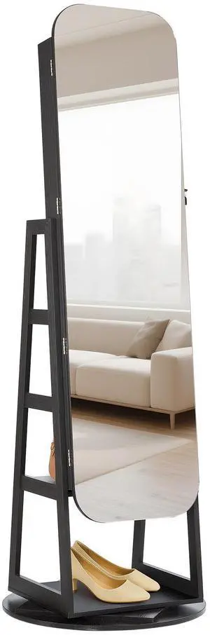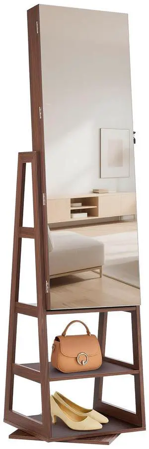 360° Swivel Jewelry Cabinet, 61-inch Tall, Full-Length Mirror with Storage, Standing Rotatable Jewelry Armoire Organizer, Lockable Door with 2 Keys, Accessory Pouches, and Storage Shelves