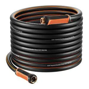 Garden Hose, 50 ft 5/8" Heavy Duty 4-Layer Rubber Water Hose, 150PSI Working & 600PSI Burst, Flexible & Non-kink Outdoor Waterhose with 3/4" Fitting, Lightweight Hoses for Gardening Cleaning