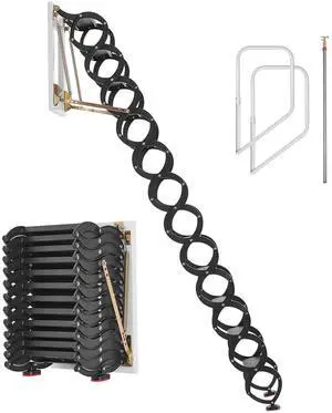 Attic Ladder Wall-Mounted, 660LBS/299.4KG Capacity, Fits 9.5 to 10 ft Ceiling Height, 12-Step Steel Folding Stairs with Handrails, Pull Down Attic Ladders for Attics, Garages, Roofs, Basements