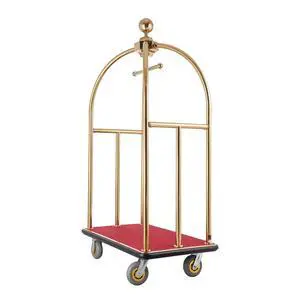 Hotel Luggage Cart, 1100 LBS Load Capacity, Brushed Stainless Steel Bellman's Cart Curved Uprights, Valet Cart with Red Carpeted Deck and 6-inch Rubber Wheels, Ideal for Hotels, Condos, Resorts