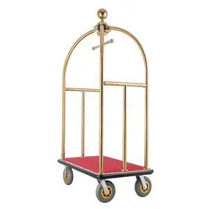 Hotel Luggage Cart, 1500 LBS Load Capacity, Brushed Stainless Steel Bellman's Cart Curved Uprights, Valet Cart with Red Carpeted Deck and 8-inch Rubber Wheels, Ideal for Hotels, Condos, Resorts