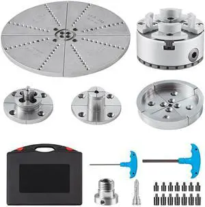 KP965 Lathe Chuck, 4-Jaw 3.75" Diameter, Metal Lathe Chuck Turning Machine Accessories with 5 Sets of Jaws, Self-centering Tool, for Precision Machining, Grinding Machines, Milling Machines
