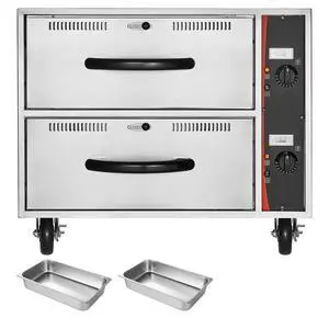 Commercial Electric Drawer Warmer, Two-Drawer Stainless Steel Food Warmer, Freestanding Standard Warming Drawer Cabinet, 85°F185°F Wide Temperature Range, for Restaurant, Hotel Buffet & Bakery
