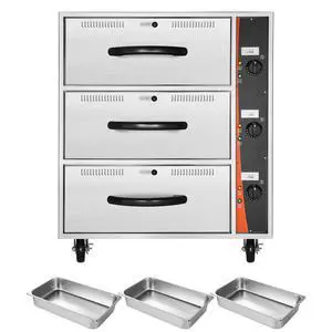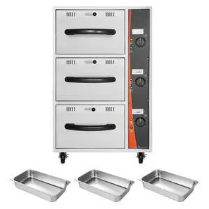 Commercial Electric Drawer Warmer, Three-Drawer Stainless Steel Food Warmer, Freestanding Standard Warming Drawer Cabinet, 85°F185°F Wide Temperature Range, for Restaurant, Hotel Buffet, Bakery