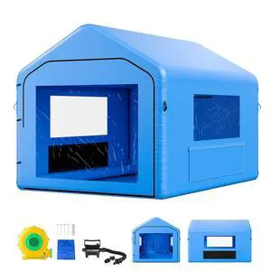 SKYSHALO Inflatable Spray Tent, Dimensions 39.4x16.4x13.1 ft, Equipped with Dual High-Efficiency Fans, Features Air Filtration, Ideal for Vehicle Spray Painting or Workspace, Blue