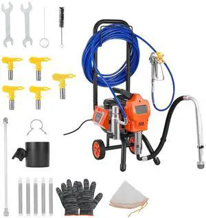 Stand Airless Paint Sprayer, 1500W, 3300PSI High Pressure Airless Sprayer, Cleaning Brush, Hose, Extension Rod, Nozzles, Electric Spray Paint Machine for Large Apartments, Factory Buildings