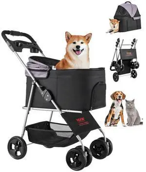 VEVOR Pet Stroller, 35 lbs Weight Capacity, Foldable Dog Stroller Cart, 4 Wheels Cats Pram with Detachable Carrier & Mesh Windows, Portable Animal Carrier with Brake for Small to Medium Pets