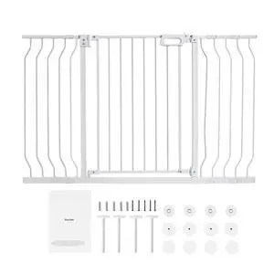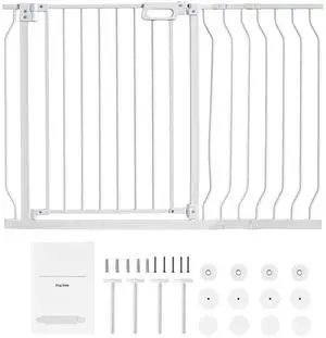 Baby Gate, 29.5"-37" Extra Wide, 30" High, Dog Gate for Stairs Doorways and House, Easy Step Walk Thru Auto Close Child Gate Pet Security Gate with Pressure Mount Kit and Wall Mount Kit, White