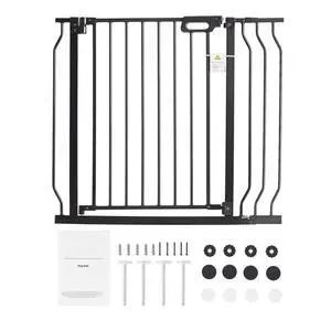 Baby Gate, 29.5"-37" Extra Wide, 30" High, Dog Gate for Stairs Doorways and House, Easy Step Walk Thru Auto Close Child Gate Pet Security Gate with Pressure Mount Kit and Wall Mount Kit, Black
