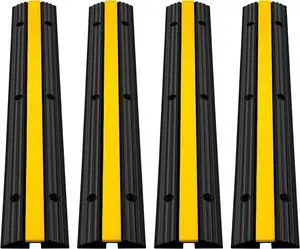 VEVOR 4 Pack of 1-Channel Rubber Cable Protector Ramps Heavy Duty 18000Lbs Load Capacity Cable Wire Cord Cover Ramp Speed Bump Driveway Hose Cable Ramp Protective Cover