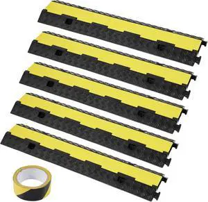 VEVOR 5 PCs Rubber Cable Protector Ramp, 2 Channel, 12000 lbs/axle Capacity Heavy Duty Hose Wire Cover Ramp Driveway, Traffic Speed Bump with Flip-Open Top Cover & 50 ft Warning Tape, for Indoor&Outdo