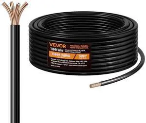 VEVOR 3 AWG THHN Wire, 19-Stranded, 100% OFC Copper Electrical Building Wire with Nylon Jacket, Rated for Up to 600 Volts, for Indoor & Outdoor Use, Commercial, Industrial, Residential, Black (50 ft)