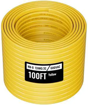 VEVOR NM-B Wire, 12AWG/2C Non-Mettalic Residential Indoor Electrical Wire with Ground, PVC Sheathed High-Purity Copper Core Cable, for Outlets, Switches, Other Loads & Lighting Wiring Project(100 ft)