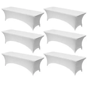 VEVOR 6 Pack Table Cloth for 8FT Rectangular Fitted Events, Wrinkle-Resistant Stretch White Table Covers, Washable Spandex Tablecloth Protector, for Party, Wedding, Cocktail, Banquet, Festival