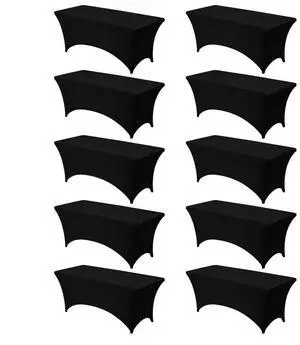 VEVOR 10 Pack Table Cloth for 6FT Rectangular Fitted Events, Wrinkle-Resistant Stretch Black Table Covers, Washable Spandex Tablecloth Protector, for Party, Wedding, Cocktail, Banquet, Festival