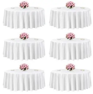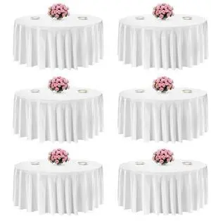 VEVOR White Round Tablecloths 6 Pack, 120 Inches in Diameter, Stain- & Wrinkle- Resistant, Machine Washable Table Clothes, Polyester Fabric Table Covers for Wedding, Party, Banquet, Formal Events