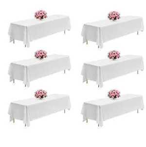 VEVOR White Tablecloths for Rectangle Tables, 6 Pack, 90 x 132 Inches, Reusable and Machine Washable Table Clothes, Wrinkle-Resistant Polyester Fabric Table Covers for Wedding, Party, Banquet