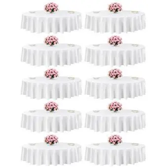 VEVOR White Round Tablecloths 10 Pack, 90 Inches in Diameter, Stain- & Wrinkle- Resistant, Machine Washable Table Clothes, Polyester Fabric Table Covers for Wedding, Party, Banquet, Formal Events
