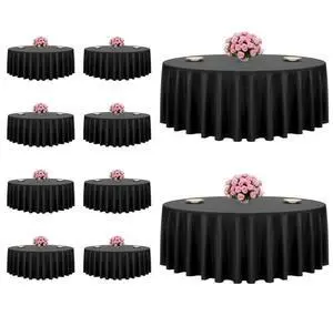 VEVOR Black Round Tablecloths 10 Pack, 120 Inches in Diameter, Stain- & Wrinkle- Resistant, Machine Washable Table Clothes, Polyester Fabric Table Covers for Wedding, Party, Banquet, Formal Events