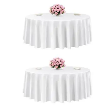 VEVOR White Round Tablecloths 2 Pack, 120 Inches in Diameter, Stain- & Wrinkle- Resistant, Machine Washable Table Clothes, Polyester Fabric Table Covers for Wedding, Party, Banquet, Formal Events