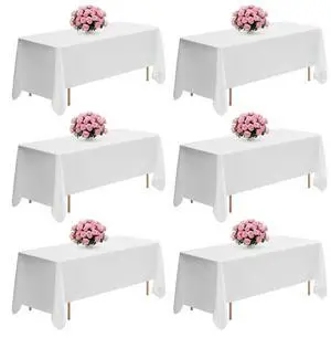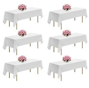 VEVOR White Tablecloths for Rectangle Tables, 6 Pack, 60 x 102 Inches, Reusable and Machine Washable Table Clothes, Wrinkle-Resistant Polyester Fabric Table Covers for Wedding, Party, Banquet