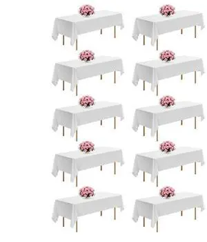 VEVOR White Tablecloths for Rectangle Tables, 10 Pack, 60 x 102 Inches, Reusable and Machine Washable Table Clothes, Wrinkle-Resistant Polyester Fabric Table Covers for Wedding, Party, Banquet