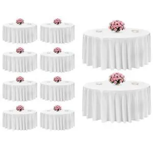 VEVOR White Round Tablecloths 10 Pack, 120 Inches in Diameter, Stain- & Wrinkle- Resistant, Machine Washable Table Clothes, Polyester Fabric Table Covers for Wedding, Party, Banquet, Formal Events