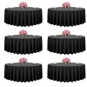 VEVOR Black Round Tablecloths 6 Pack, 120 Inches in Diameter, Stain- & Wrinkle- Resistant, Machine Washable Table Clothes, Polyester Fabric Table Covers for Wedding, Party, Banquet, Formal Events