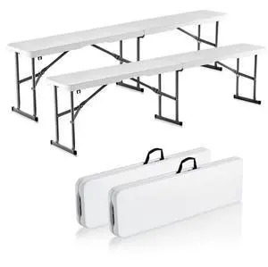 VEVOR 6FT Plastic Folding Bench Portable Outdoor Bench for Picnic Camping 2 Pack
