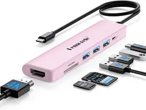 Lemorele USB C Hub 7 in 1 Adapter with HDMI 4K@30Hz, 100W PD Charging, 1 USB3.0 5Gbps Data Port, 2 USB 2.0, SD/TF, USB C Multiport Dongle for MacBook/ChromeBook/Dell/HP/Lenovo(Pink)