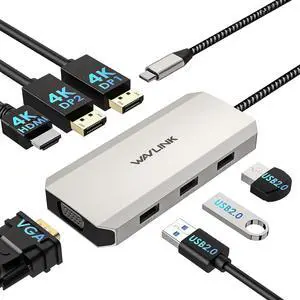 WAVLINK USB C Dock Quad Monitor, 7-in-1 Laptop Docking Station, Multiport Adapter with Dual 4K DP, 4K HDMI, 1080P VGA, 480Mbps USB2.0-A for MacBook, Dell XPS, Lenovo Thinkpad, and HP Laptops