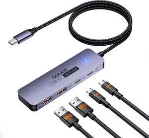 USB C Hub 10Gbps, QUUGE 4 in 1 USB 3.2 Hub with 2 USB-A & 2 USB-C 3.2 Ports (Data Transfer Only), Aluminum USB 3.2 Splitter with 3.3ft Extension Nylon Cable, Multi USB Adapter for MacBook, Laptop