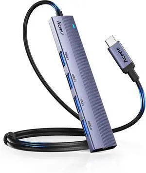 Aceele USB C Hub, 4 Ports USB 3.0 Splitter with 2ft Extended Cable, USB C Multiport Adapter with Type C Power Port for PC Laptop MacBook Phone Tablets and More Type C Devices