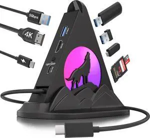 USB C Hub Multiport Adapter, 8-in-1 Wolf USBC Hub with 4K 30Hz HDMI, 100W Power Delivery, 5Gbps 3 USB-A Data Ports, USB-C 3.0, SD/TF Card Reader, RGB Vertical Docking for MacBook Pro, Mac mini, Dell