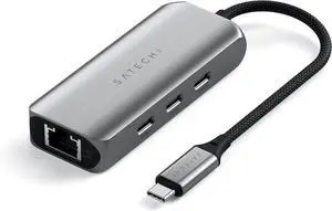 Satechi USB C Ethernet Adapter 2.5 Gigabit, 4 in 1 USB C Network Adapter Ethernet with Enhanced Speed and 3 USBC 3.2 Ports, USBC Adapters for Mac, iPad, Windows, Android, Chrome