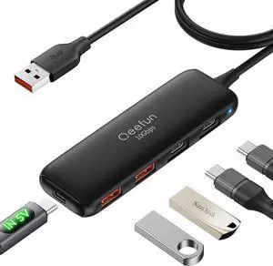 Qeefun USB 3.2 Hub, 4ft Extension Long Cable Cord, 10Gbps High-Speed Data Transfer, USB Splitter with 2 USB-C and 2 USB-A for Laptop, PC, Flash Drive, Printer, Camera, Mouse, Keyboard