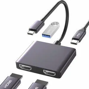 USB C Hub Multiport Adapter, Docking Station for Laptop Dual Monitor, USB C to HDMI Adapter, Dual Monitor Extended Display, USB C Splitter for 2 Monitors