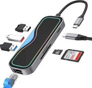 USB C Hub, 7 in 1 USB-C Hub Multiport Adapter with Gigabit Ethernet, 100W PD Charging, 3 USB 3.0 Ports, SD/TF, 1Gbps Ethernet to USB C, USB C Dock for Laptop,MacBook M1/M2, iPad, iMac, XPS, Surface,HP