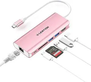 LENTION USB-C Digital AV Multiport Hub with 4K HDMI, 2 USB 3.0, Card Reader, Type C Charging, Gigabit Ethernet Adapter Compatible MacBook Pro 13/15 (Thunderbolt 3), 2018 MacBook Air, More (Rose Gold)