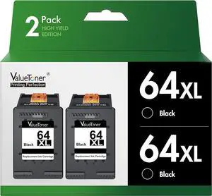 Valuetoner Remanufactured Ink Cartridge Replacement for HP 64 XL 64XL Black Ink for HP Printers Envy Photo 7858 7855 6255 6252 6232 7158 7255e 7955e 7958e 7950e 6200 7100 7800 Tango Series (2 Black)