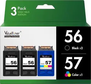 Valuetoner Remanufactured Ink Cartridge Replacement 56 & 57 C9321BN C6656AN C6657AN for Deskjet 5850 5650 5150, Photosmart 7150 7260 7350 7960, PSC 2510 Printer (2 Black, 1 Tri-Color, 3 Pack)