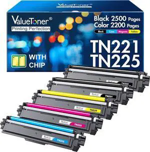 Valuetoner Compatible Replacement TN221 Toner Cartridges TN 225 for Brother TN221 TN-225 Toner for Printer MFC-9130CW HL-3170CDW HL-3140CW MFC-9340CDW MFC-9330CDW (2 Black 1 Cyan 1 Magenta 1 Yellow)