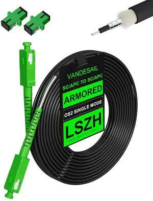 50M/164ft SC/APC Fiber Optic Internet Cable Extension, SC/APC to SC/APC Armored Fiber Patch Cable, OS2 Fiber Optical Patch Cord, LSZH Black