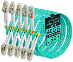 Fiber Patch Cable, VANDESAIL 10G Gigabit Fiber Optic Cables with LC to LC Multimode OM3 Duplex 50/125 OFNP (3M, OM3-5Pack)