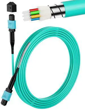 MPO to MPO OM3 Armored Fiber Optic Cable 8-Core 40/100G 20m (66ft) LSZH Jacket, Multimode 50/125m, UPC Polished, Female-Female, for Server Rooms & SANs
