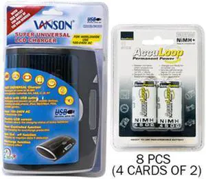 Super Universal LCD Charger + 8 C AccuPower AccuLoop NiMH Batteries (4500 mAh)