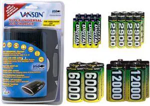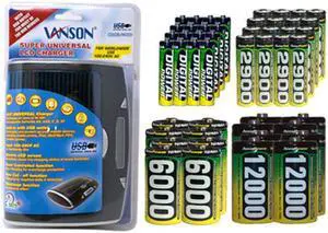 Universal LCD Charger + 16 AA (2900 mAh) + 16 AAA (1200 mAh) + 8 C (6000 mAh) + 8 D (12000 mAh) AccuPower NiMH Batteries