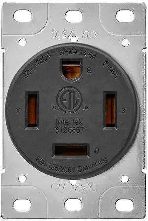Veepeak 60 Amp 125/250 Volts Flush Mounting Receptacle Outlet 14-60R, 4 Prong Straight Blade, Industrial Grade, ETL Listed, Black